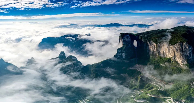 地理位置:張家界市永定區(qū)推薦理由:海拔1500多米,山頂夏季氣溫維持在26℃左右,猶如“自然空調”。乘坐世界最長的高山客運索道——天門山索道,沿途欣賞壯麗的山景,到達山頂后,還可以體驗玻璃棧道、游玩天門洞,享受清涼的山風。